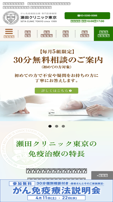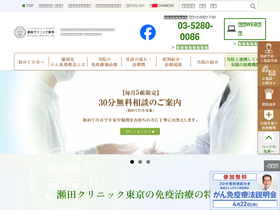 85%現在、抗がん剤や放射線による治療を受けている方への瀬田クリニック東京からのメッセージを掲載しています。今の状況が少しでも改善されることを望まれて、情報収集をされていることと思います。このサイトが少しでもその手助けになれれば幸いです。