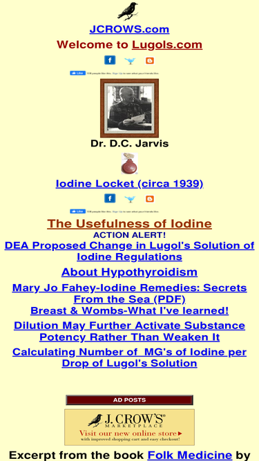 lugols.com ranks as the 4th most similar website to jcrowsmarketplace.com and stopthethyroidmadness.com ranks fifth in March 2026.