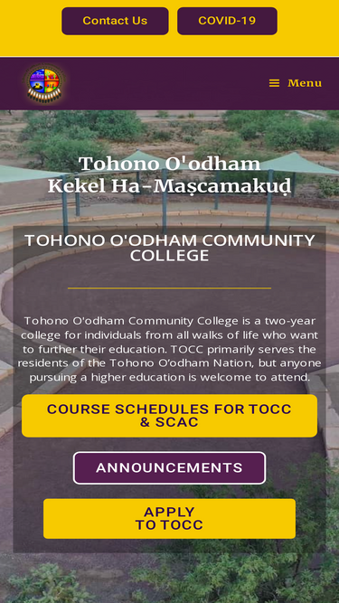 76%tohono o’odham kekel ha-maṣcamakuḍ tohono o’odham community college tohono o’odham community college is a two-year college for individuals from all walks of life who want to further their education. tocc primarily serves the residents of the tohono o’odham nation, but anyone pursuing a higher education is welcome to attend. course schedules for tocc & scac […]
