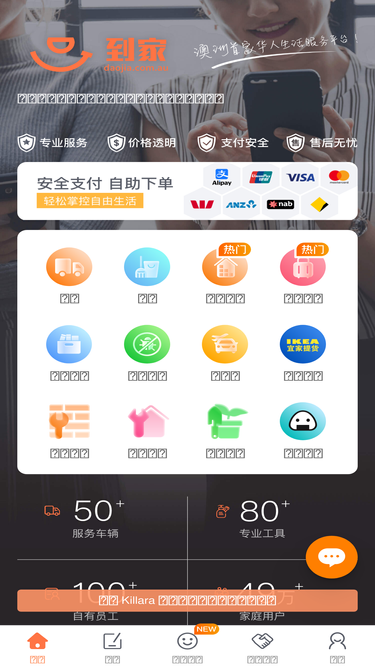 74%【到家承诺,你满意再付钱】49万悉尼华人首选,服务不拖拉,价格透明,售后无忧!提供搬家搬运,家具安装,退房清洁,仓储寄存,行李寄存,大件邮寄回国,除虫,除草等生活服务。澳洲首家全自营的生活服务平台,旨在帮助华人轻松解决生活难题。