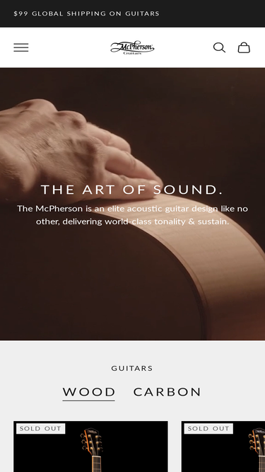 mcpherson guitars makes some of the best sounding wood and carbon fiber acoustic guitars in the world. featuring an offset sound hole design, cantilevered neck, and state of the art bracing, these acoustic guitars are proudly made in the usa.