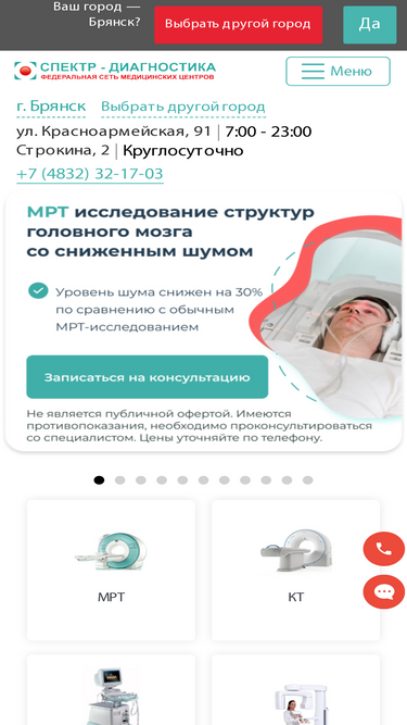 100%диагностический центр спектр диагностика в брянске предлагает услуги мрт, кт, узи, клкт, функциональная диагностика, медицинские анализы, электромиография, плазмолифтинг и другие | звоните: +7 (4832) 32 17 03, +7 (930) 735 8888 ! работаем круглосуточно!