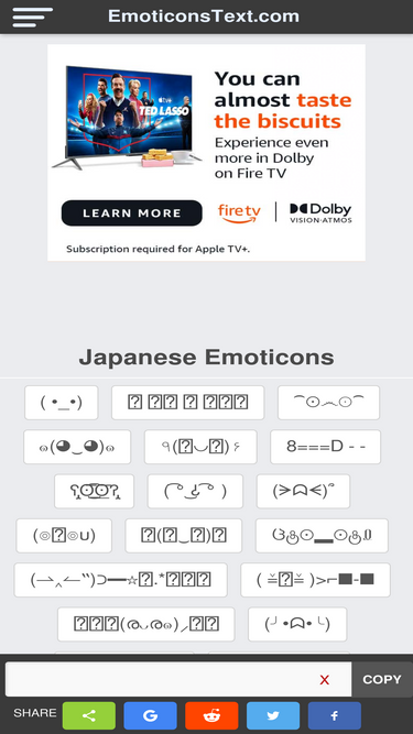 79%Click to copy and paste anywhere. A huge library of emoticons that can be accessed and shared quickly across the internet ლ(╹◡╹ლ)