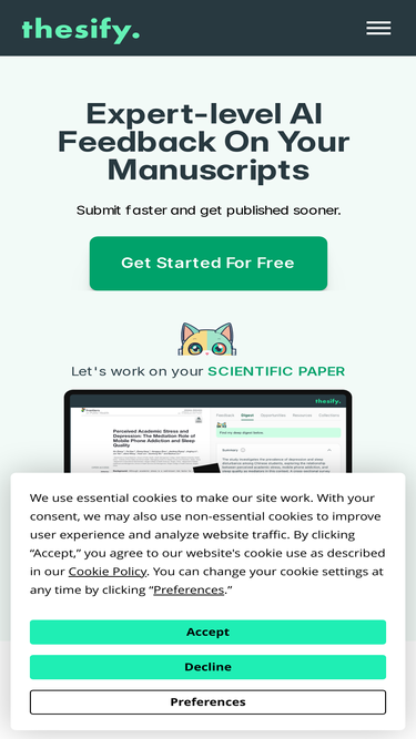92%Thesify: Review your academic writing with real-time feedback. Thesify helps you improve papers, theses, essays, and grant proposals. Developed with educators and universities for academic integrity.