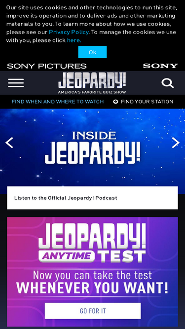 92%Welcome to Jeopardy.com, home of America's Favorite Quiz Show®. Here you can play games, learn about upcoming tests, stay up to date on J! news and more.