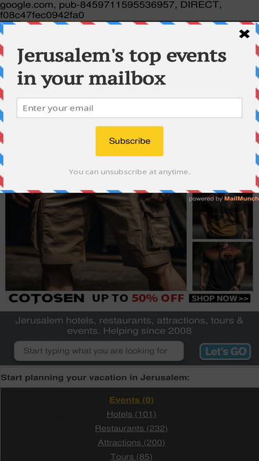 99%Jerusalem's one-stop-travel-shop: Compare 10,000+ Hotels, tours, attractions, restaurants & events. Find the best deals faster. Helping since 2008