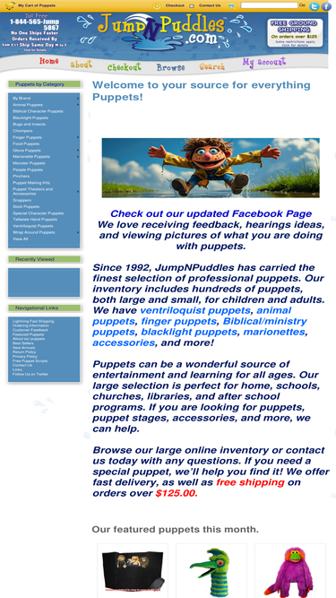 90%jumpnpuddles offers puppets for ministry, therapy puppets, puppets for schools, marionettes, half and full body puppets, and fun, finger puppets. call now! ph:866-461-5867