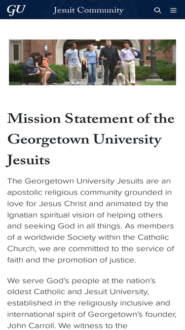 77%Mission Statement of the Georgetown University Jesuits The Georgetown University Jesuits are an apostolic religious community grounded in love for Jesus Christ and animated by the Ignatian spiritual vision of helping others and seeking God in all things. As members of a worldwide Society within the Catholic Church, we are committed to the service of […]