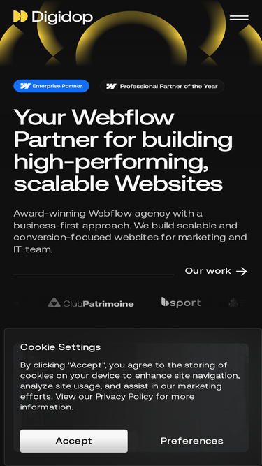 We are glad to be a part of the Webflow Enterprise Partners, a seal that guarantees the quality of our service.