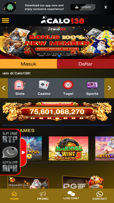 100%Calo138 adalah penyedia situs game berbasis online yang cukup di sangat mudah hanya dengan handphone canggih anda sudah bisa merasakan sensasi bermain permainan game online yang bisa menguntungkan dan memberikan anda uang tambahan, segera coba sekarang juga bermain game online di Calo138 !