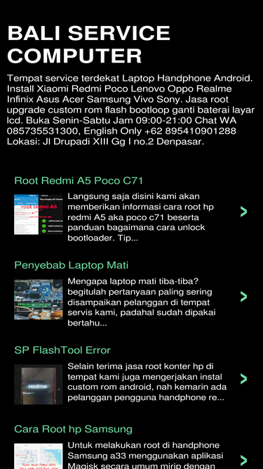 99%alamat tempat service di bali,perbaikan laptop handphone tablet,android battery rusak,cara instal hp flash jasa root download aplikasi rom firmware