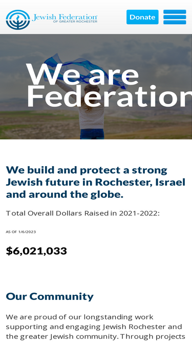 100%welcome to jewish federation of greater rochester. we are at the center of jewish life in monroe county.
