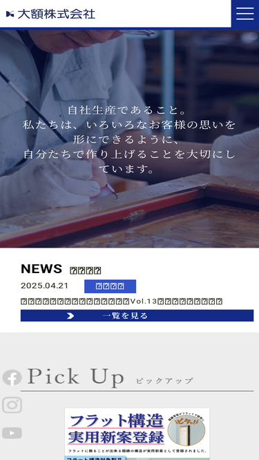 大阪市中央区に本社を構える額縁メーカーの大額です。自社生産にこだわり油額、デッサン額、水彩額、ポスターフレーム、モールディング、その他、幅広く展開しております。東京・名古屋の営業所をはじめ、三重・ベトナムにて自社工場生産をおこなっています。是非ショールームへお越し下さい。