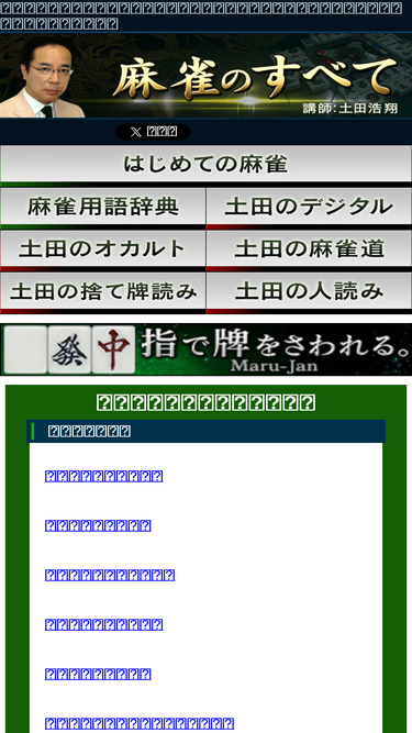 80%「麻雀のすべて」はこれから覚えようという初心者から、より強くなりたい上級者まで、全雀士に贈る麻雀総合サイトです。講師の土田浩翔プロによる動画とテキストで、麻雀についての基礎、用語、ルール、麻雀役、戦略をわかりやすく解説しています。