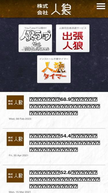 80%人狼の楽しさを広める会社「株式会社人狼」の公式webサイトです。オリジナル人狼ゲーム「うそつき人狼」大好評販売中!