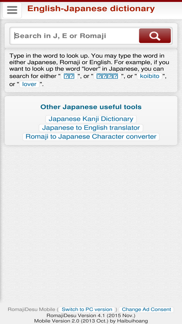 85%Japanese-English, Japanese dictionary, Japanese to English, Japanese to Romaji, romaji to English, free, online, dictionary, translator, analyzer, jisho, romaji, hiragana, katakana, kanji, English, Japanese, converter, translator