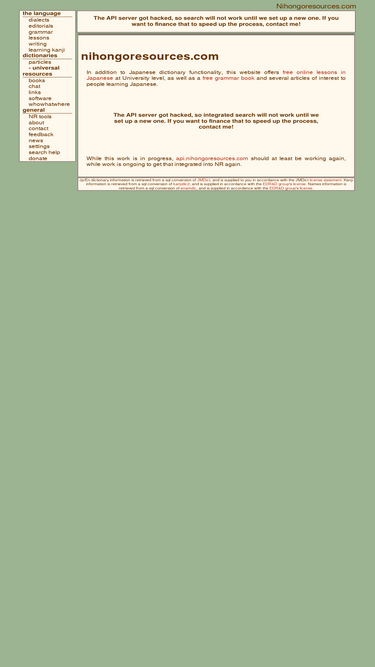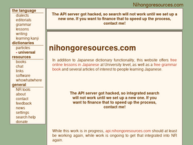 95%free online japanese language resources: dictionaries (je-ej, kanji, names, particles, sfx, counters), topicised grammar, free online university-grade lessons, dicussion forum, and lots more.