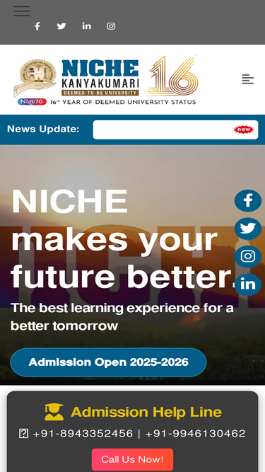 90%NICHE is a best Deemed to be University in South India. Received 50+ awards in last 5 years. AICTE Approved Courses. International Level Laboratories. Highly educated staffs. World class infrastructure. Etc.,