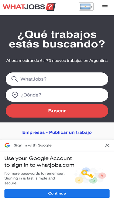 91%La respuesta está acá. Usá el buscador de WhatJobs para filtrar miles de ofertas laborales en todo el país. Encontrá el trabajo ideal por zona, sueldo o tipo de jornada (completa, media jornada o remoto), y postulate hoy mismo.