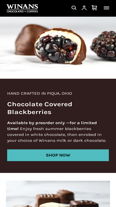 63%Winans Sea Salt Caramels are made by hand using our secret family recipe with real cream and sugar, then covered in creamy milk chocolate and topped with crunchy sea salt. Winans Sea Salt Caramels are the perfect blend of sweet and savory, which has made them a customer favorite, and one of our top sellers! Box is assorted milk and dark chocolates.