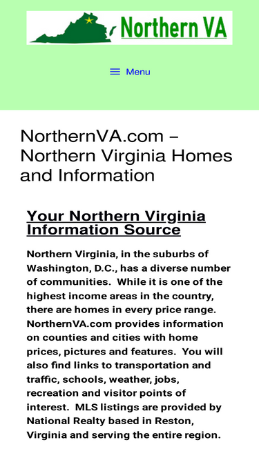98%northern virginia real estate - searching, buying and selling northern virginia homes. free home evaluation over the internet.