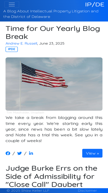 A Blog About Intellectual Property Litigation and the District of Delaware