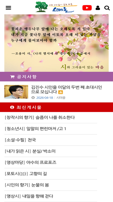 89%시와 그리움이 있는 마을, 시마을 홈페이지입니다.