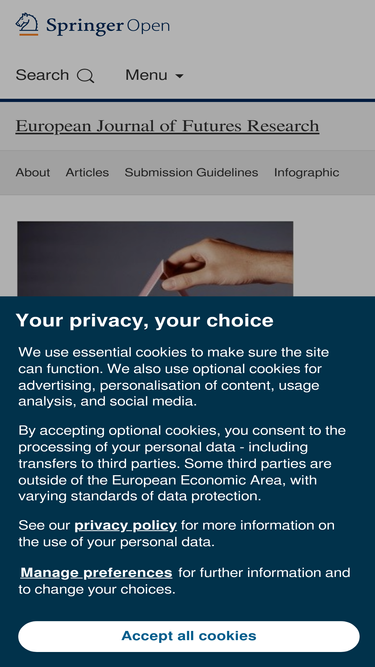 85%The European Journal of Futures Research is a peer-reviewed open access journal published under the brand SpringerOpen: It publishes original research papers ...