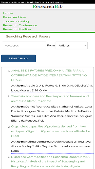 87%researchbib indexs/archives research paper (journal article, conference proceedings) freely and provides rapid worldwide distribution of research to authors and their readers.