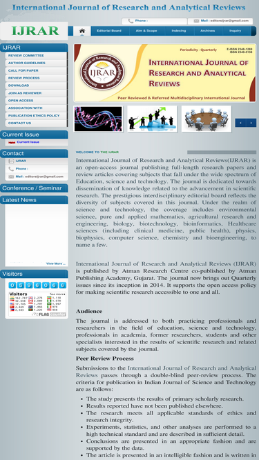 98%IJAR - Indian Journal of Applied Research is a double reviewed monthly print journal that accepts research work. 36572+ Manuscript submission, 9855+ Research Paper Published, 100+ Articles from over 100 Countries.