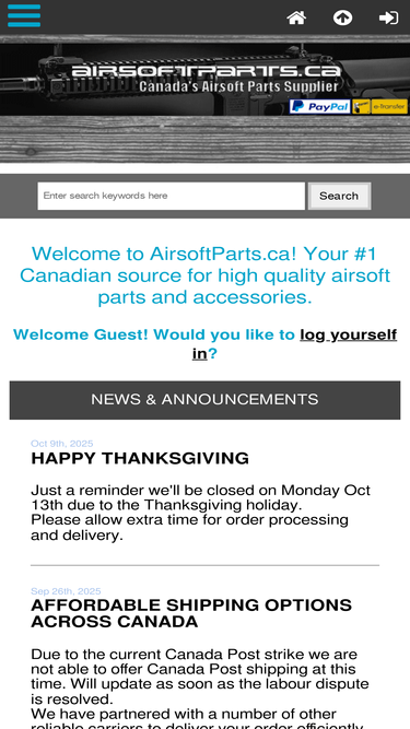 87%airsoftparts.ca : - aeg parts aeg internals barrel attachments gbb pistol parts gbb pistol internals shotgun/sniper parts magazines illumination tools optics & sights field gear tools & misc. supplies gbb rifle parts limited time offer ecommerce, open source, shop, online shopping, store