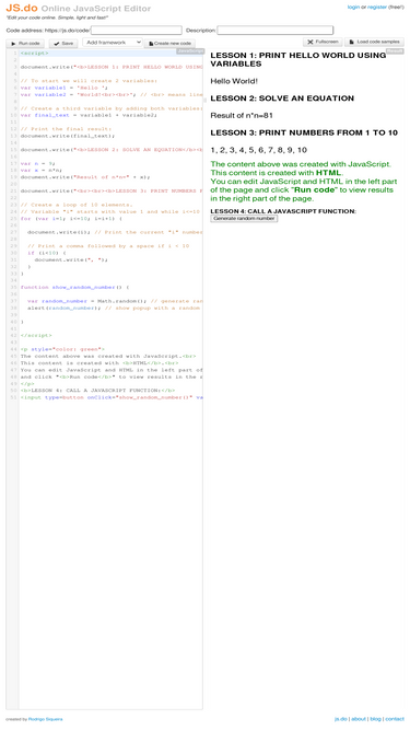 88%online javascript editor - write and run your javascript code inside this page.