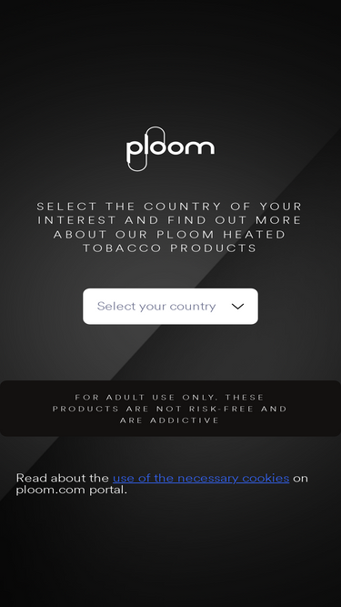 100%select your country of interest and find out more about our ploom heated tobacco products. for adult use only, these products are addictive.