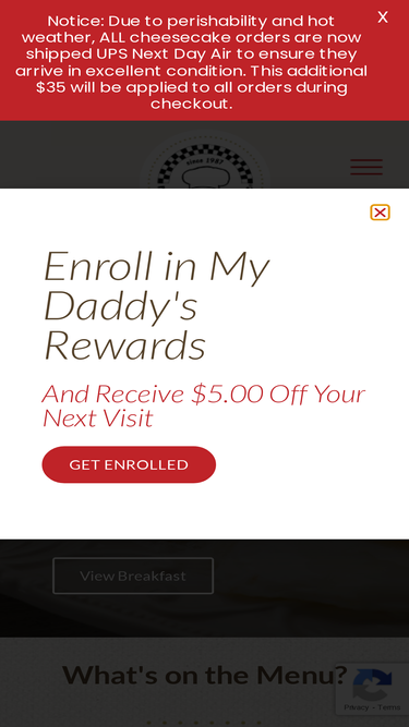 Due to perishability and hot weather, ALL cheesecake orders are now shipped UPS Next Day Air to ensure they arrive in excellent condition. This additional $35 will be applied to all orders during checkout!