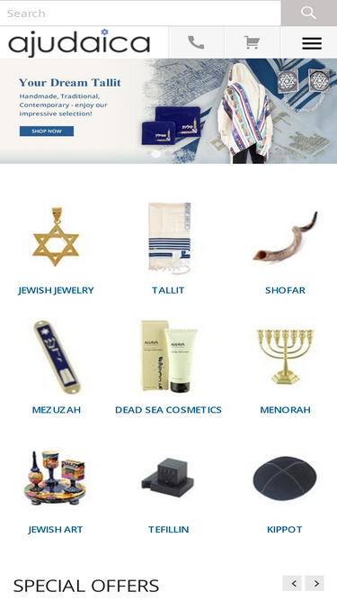 shop for judaica and jewish gifts, unique israeli jewelry, dead sea cosmetics from the leading brands. best value on shofar, tallit, tefillin and mezuzah.