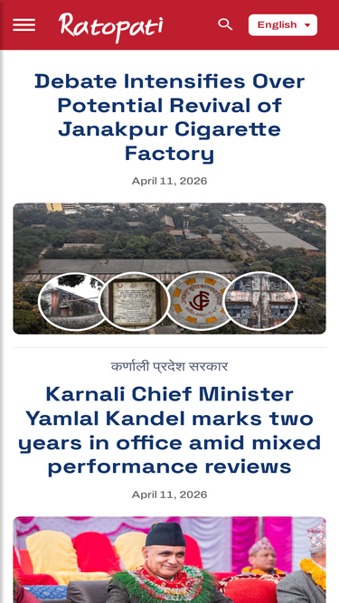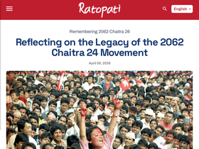 65%Ratopati is Best Online Nepali news portal for Politics, Opinions, Sports, Entertainment, Corporate, English news, Blogs and other news from Nepal.