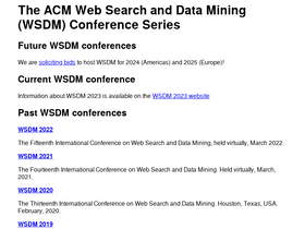 76%WSDM Cup 2022 is a machine learning competition-style event co-located with the leading WSDM (Web Search and Data Mining) conference. Competition tasks are hosted on public competition platforms (e.g. Kaggle, Biendata), offering a clear specification of objective, a dataset (can be anonymized and de-identified appropriately), and a small reward for top-3 winning teams (typically $5-10K …