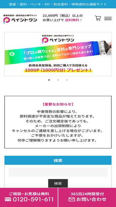 業務用塗料・塗料用品専門店のオンラインショップ「ペイントワン」。建築用塗料、重防食用塗料をはじめ、自動車補修用塗料、工場用塗料、船舶用塗料からdiy家庭用塗料までをラインナップ。日本最大級の品揃え!大口注文も対応可能ですので、お気軽にご連絡ください。