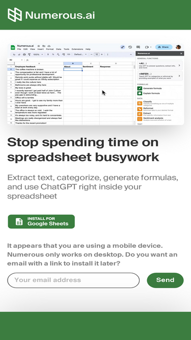 82%An AI-powered spreadsheet plugin that brings ChatGPT to Google Sheets and Excel.