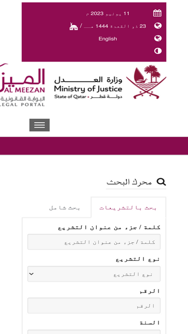 86%...إن البوابة القانونية القطرية (الميزان) مصدر موثق يساهم في نشر التشريعات وكافة المعلومات القانونية بدولة قطر. تمكن البوابة المواطنين