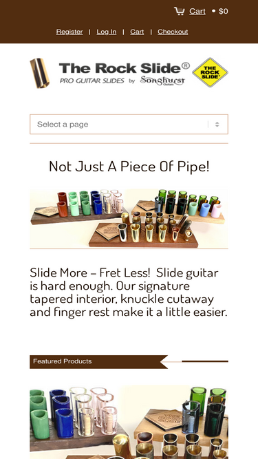 89%USA Made Custom Shop Slides are the coolest of the cool. Small batch glass colors, frosted glass, copper and gold plated brass plus whatever else we dream up. Colored glass slides in the CS don't have a finger rest. Only available at therockslide.com
