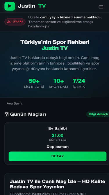 Justin TV güncel adresiyle bedava canlı maç izle! Futbol, basketbol ve tüm spor karşılaşmalarını yüksek kalitede, donmadan izleme keyfi Justin TV'de.