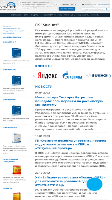 60%гк «хомнет» – официальный сертифицированный партнер 1с в москве с 2000 года. большой опыт автоматизации финансовых и холдинговых организаций.