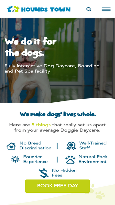 Looking for affordable and fun dog boarding for your furry friend? That's Hounds Town! All boarding dogs always play all day for no extra cost.