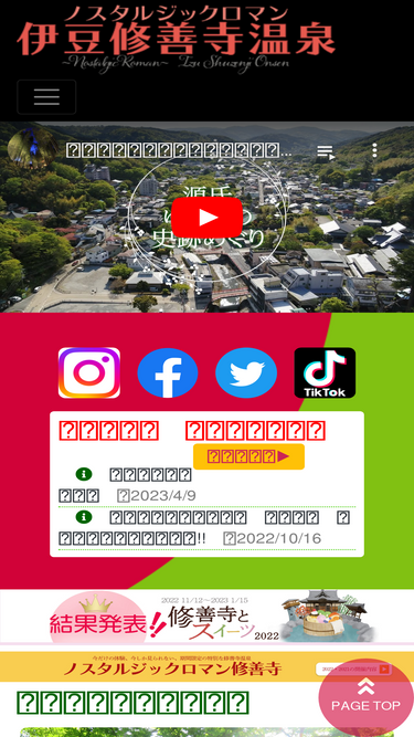 87%静岡県 伊豆半島に位置する修善寺温泉より、観光情報の総合情報サイトです。観光、イベントや特産品、季節ごとの見どころ、宿泊施設、飲食店、アクセス情報や、北条氏、源氏にまつわる史跡など。ノスタルジックロマン修善寺温泉へ、是非お越しください。