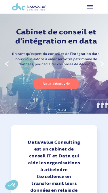 95%DataValue Consulting est un cabinet de conseil IT et Data spécialisé dans la réalisation de vos projets de stratégie data, mise en place de plateformes Data, Data Visualisation, Business Intelligence, EPM, Big Data...
