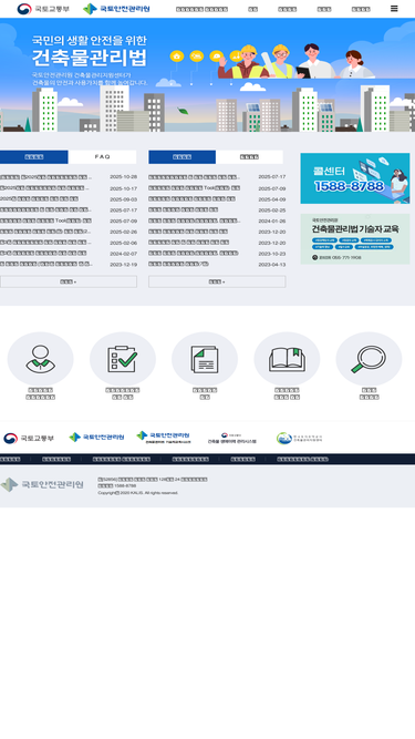 97%건축물관리법 소개, 건축물관리 정책 수립 지원, 건축물관리점검 결과 평가, 해체계획서 검토, 건축물점검 점검자 교육, 건축물사고조사