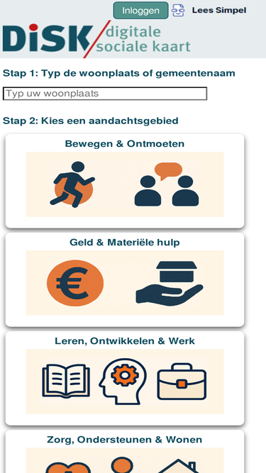 100%DiSK is de wegwijzer naar inkomen, werk, wonen, welzijn en zorg in uw gemeente of regio.