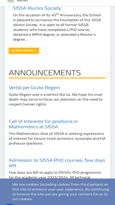 75%The SISSA campus is located in Opicina (Trieste), in Via Bonomea 265. It can easily be reached via public transportation, which connects the campus to downtown Trieste (at 4 km only), or via highway. For further information, click on the Google map below. TEL: (+39)0403787111 INFO: info@sissa.it; PEC: protocollo@pec.sissa.it Public transport in Trieste is run by Trieste Trasporti: Trieste Trasporti Spa Trasporto pubblico locale nella provincia di Trieste Due to the Covid19 Pandemic, an alternative shuttle service was available. All instructions to enter the school during a state of emergency are available here. ICTP’s Shuttle service to/from Miramare campus, booking and schedules: ICTP - Campus Shuttle Services A direct SISSA-ICTP connection is granted once/twice a day, Mon-Fri, by a common service organized by ICTP from September to June. The shuttle service is suspended in July and August, during Christmas and Easter breaks.