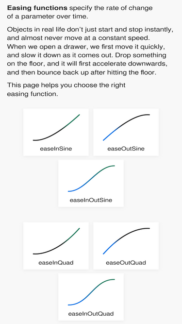 Funkcje przejścia opisują tempo animacji, aby ruch wyglądał naturalniej. Prawdziwe obiekty bowiem nie poruszają się tak po prostu, ze stałą prędkością a także nie ruszają i nie zatrzymują się natychmiastowo. Ta strona pomaga wybrać Ci odpowiednią funkcję przejścia.